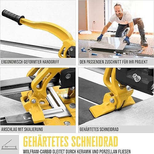 Güde Profi Hand Fliesenschneider GHF 800 (kugelgelagerte Schlittenführung, gehärtetes Schneidrad aus Wolfram-Carbid - kein Schärfen notwendig, stabile Aluminium Grundplatte, für Fliesen bis 800x12 mm)