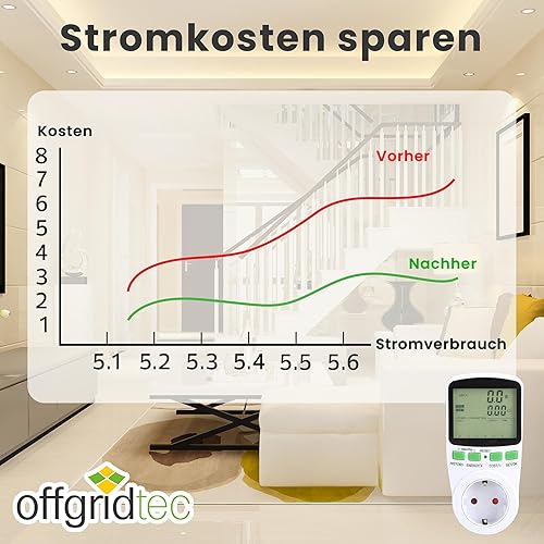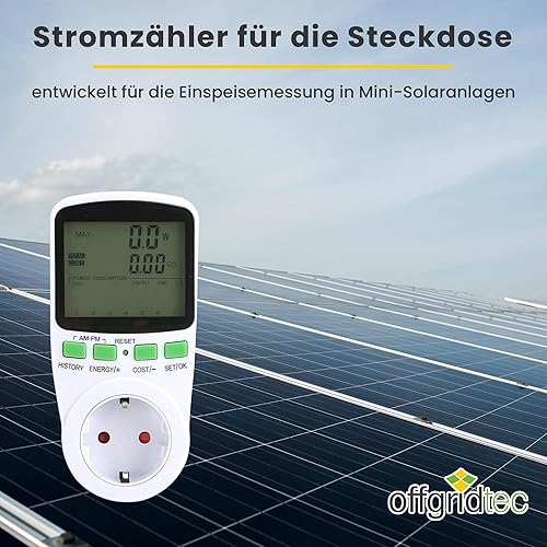 Offgridtec Stromzähler für Steckdose, PV-Zähler für Balkonkraftwerk, Echtzeit Stromverbrauchmessung, Einspeisungsmessung, Energie-Monitor, Max Last: 16A 3680W, LCD-Display, Präzise Leistungsmessung