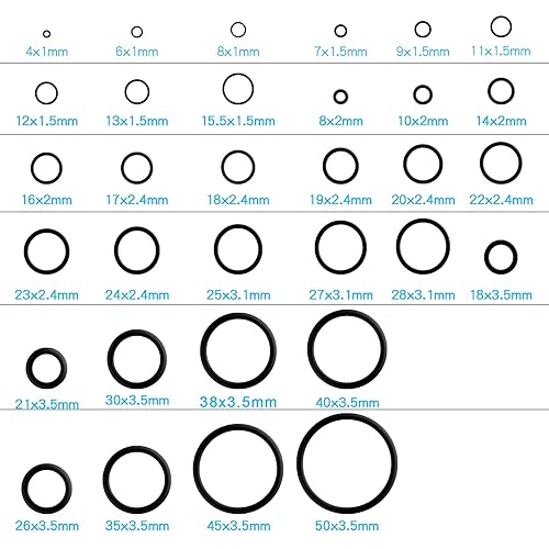 Gueenky 1225 Stück O Ring Durchmesser 4-50 mm, 32 Größen Dichtungsringe Dichtungen, Nitrilkautschuk Gummi Dichtring mit Pick und Haken Set