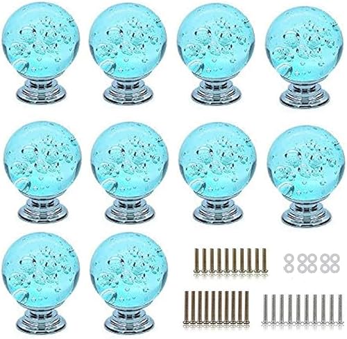 FBSHOP(TM) 10 Stück Aqua Blau Süße Bubbles Ball Crystal Glas Knopf Deko Türknauf Möbelknauf Pull Griff für Möbel Schublade Schrank Kommode Kleiderschrank Tür Küche & Baby Kid 's Kinder Möbel Decor