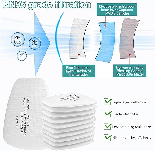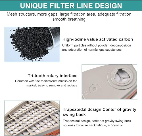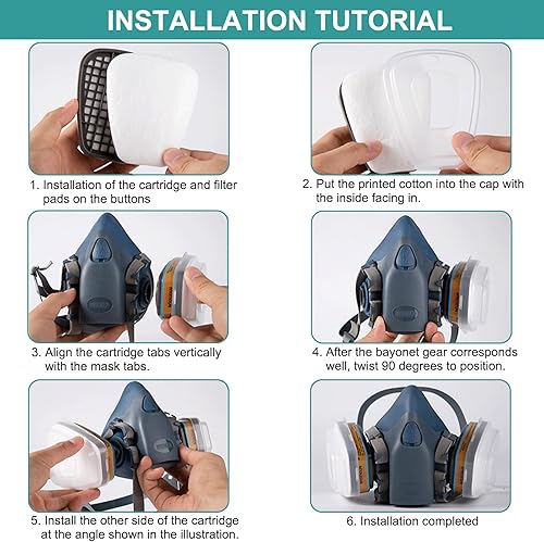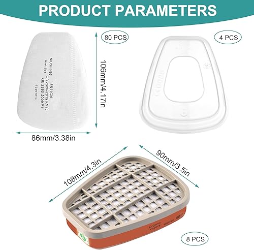 6001 Filter für Atemschutzmaske Set, Filter gegen Organische Dämpfe Set, Baumwollfilter Filters, 80 Filterbaumwolle + 4 Filter und 4 Abdeckkappen für Handwerker, Heimwerker, Farbspritz