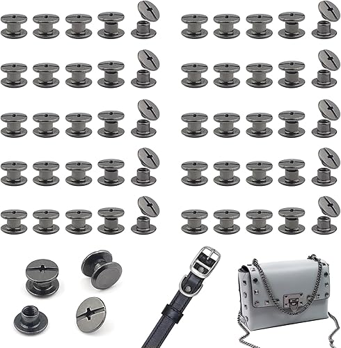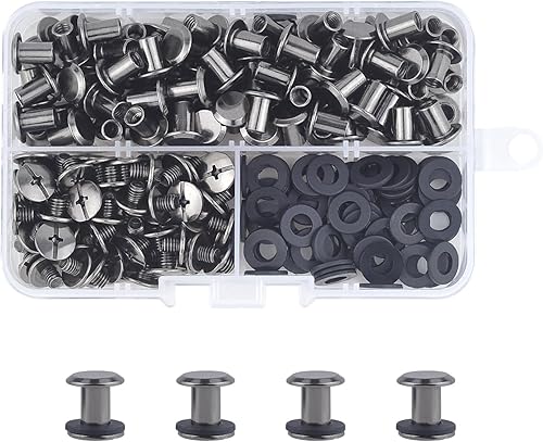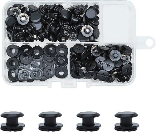 120 Set Chicago Screw Posts, Rivet Chicago Binding Screws, Metal Rivet Ersatzreparatur für Taschen, Handwerk, Halsband, Geschirr, Gepäck, Geldbörse, Hundeleine, Rucksack, Gürtel (Schwarz)