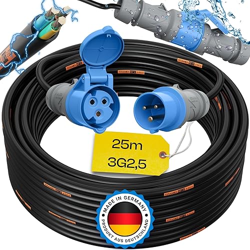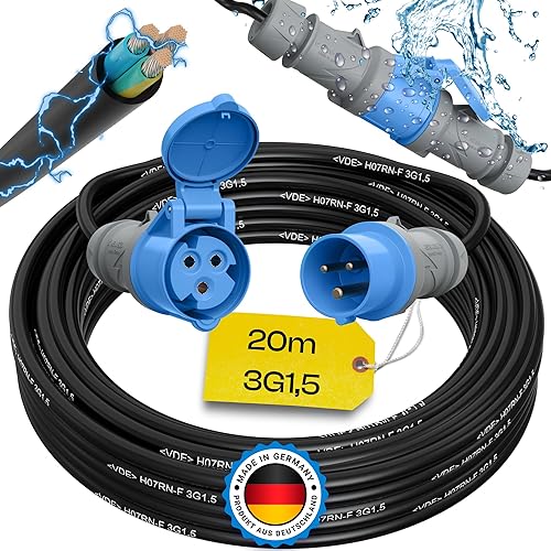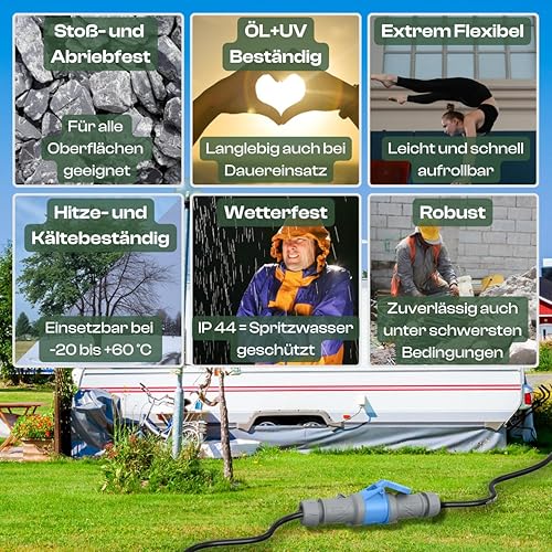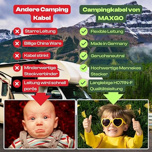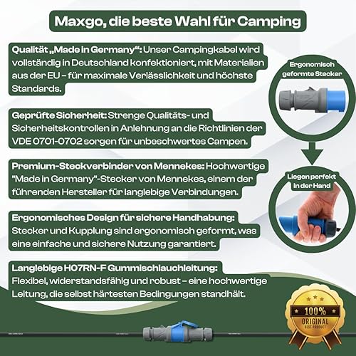 maxgo Camping Stromkabel 10m Wohnwagen Kabel Wohnmobil CEE Stecker Verlängerungskabel Orange 3x2,5 Campingkabel 10 Meter Strom Verlängerung H07BQ-F PUR Outdoor Mennekes
