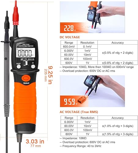 Digital Pen Multimeter Durchgangsprüfer Multimeter Voltmeter, AC/DC Multi Tester Spannung, Strom, Widerstand, Durchgangsprüfung für Professionelle Anwender-AP-38B