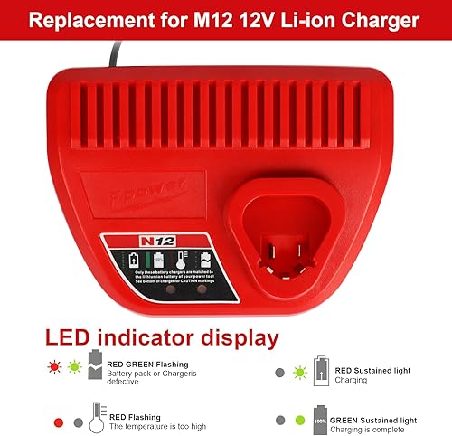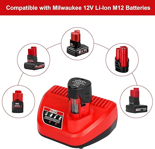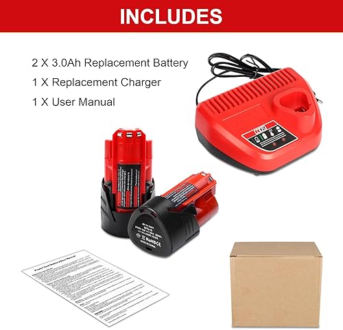 Powarobor 2 Stück M12 12V 3.0Ah Ersatzakku und 1 Stück Ladegerät Starter Kit Kompatibel mit Milwaukee 12Volt Li-Ion Akkus Werkzeuge