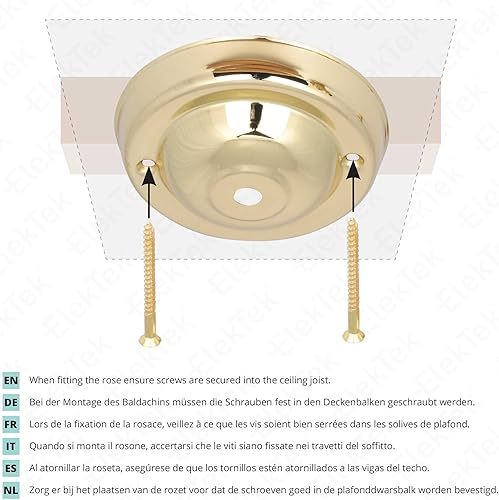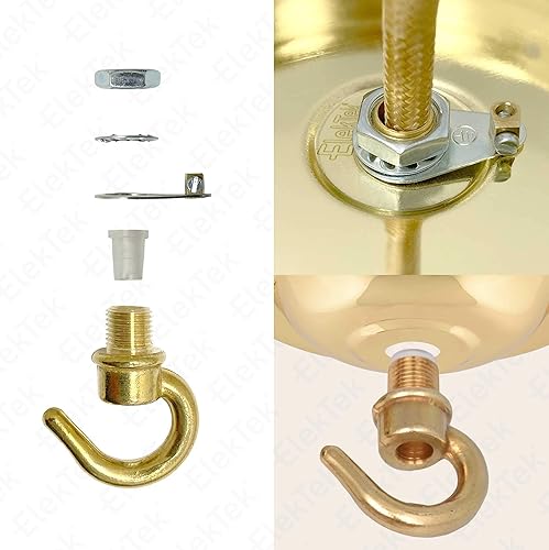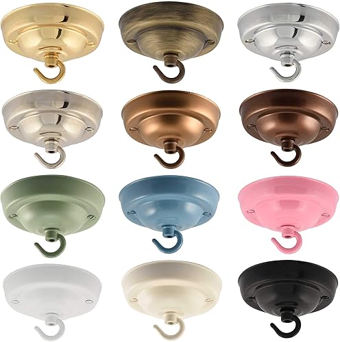 ElekTek Deckenrosette mit Haken Durchmesser 108 mm Metallausführungen Pulverlackierung für Deckenhängeleuchten und Kronleuchter Messing