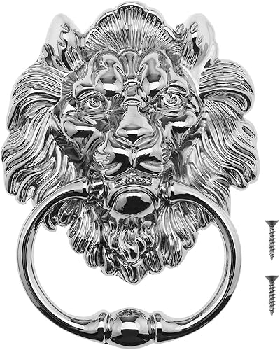 Be In Your Mind 15,8 cm Löwenkopf-Klopfer mit Schrauben, dekorativer Metall-Klopfer, poliertes Chrom, klassisches antikes Design, für Haustüren und Hauptveranden