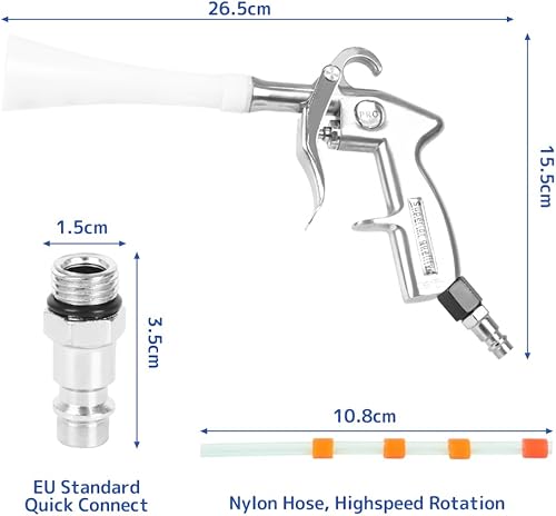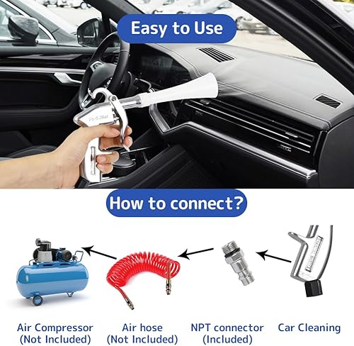 SOARFLY Druckluft Reinigungspistole für Kompressor, 6-9 Bar, 5 Ersatzschläuche, Trocken Ausblaspistole, Ausblaspistole Druckluft ohne Behälter, Effiziente Schmutzentfernung bei Auto Innenreinigung