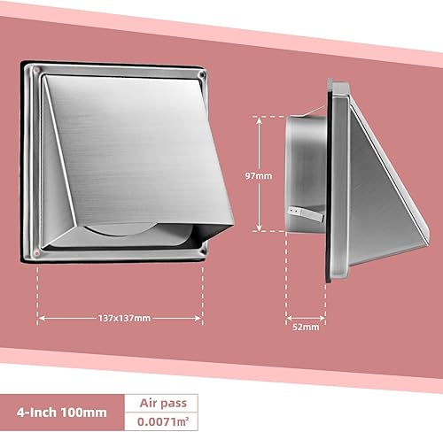 WeCooper Wetterschutzgitter 100 mm Edelstahl Haube Lüftungsgitter Ablufthaube Lamellengitter Stainless Steel