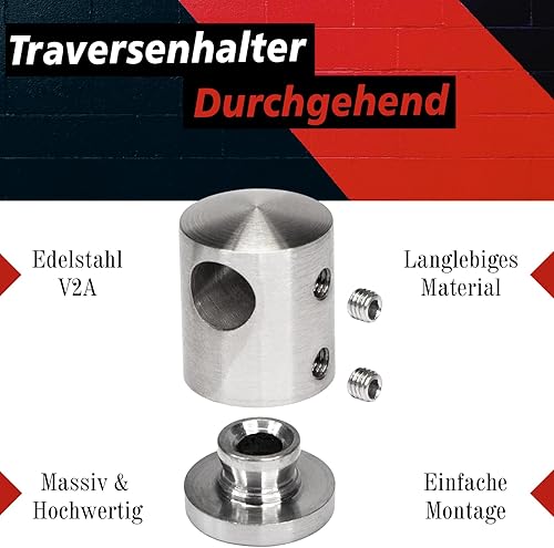 PRIOstahl Querstabhalter Traversenhalter Stabhalter Halter Durchgehend - 10 Stück für Rundstab 10 mm Anschluss: Flach für Querstäbe Querstabgeländer Geländerbau Rostfrei aus Edelstahl V2A