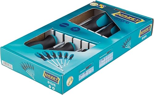 HAZET Schraubendreher-Satz 810/6 I 6-teiliges Werkzeug-Set, Abtrieb: Schlitz- und Kreuzschlitz-Profil, rutschfester HAZET 3-Komponenten-Griff, hohe Kraftübertragung für Handbetätigung