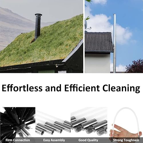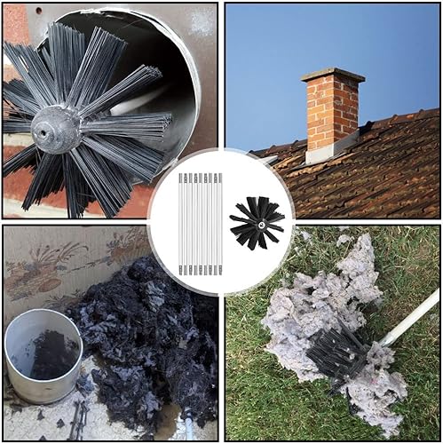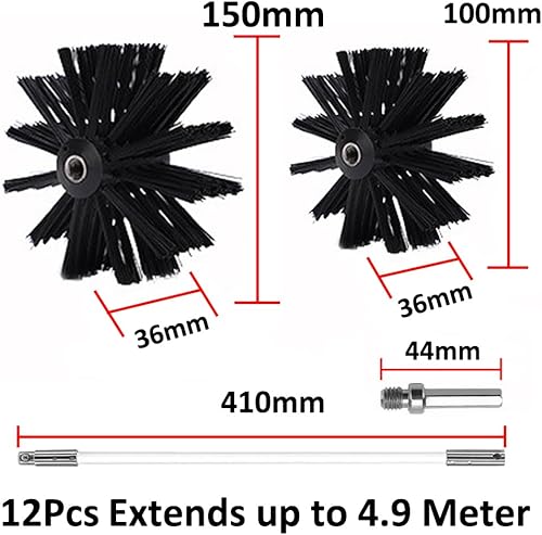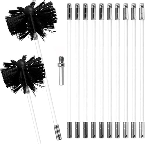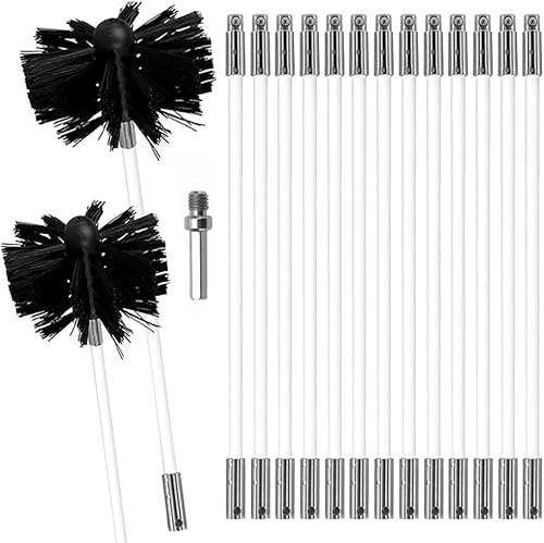 MOCNT Kaminbürste Stange Set Ofenrohrbürste Reinigungsbürste Schornsteinbürste Schornsteinfegerbesen Kaminbesen 12 Flexiblen Stangen 1 Bürstenkopf 150mm 1 Bürstenkopf 100mm