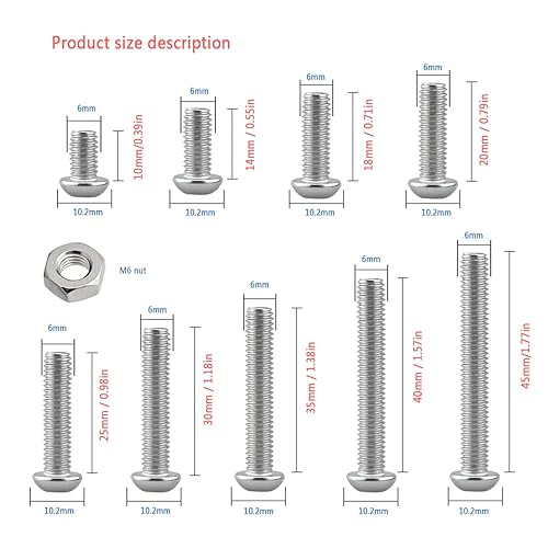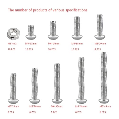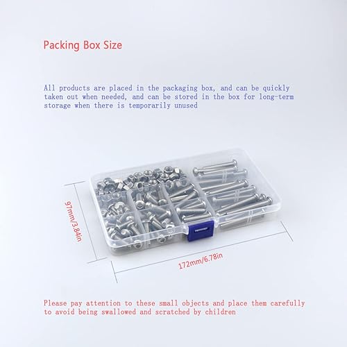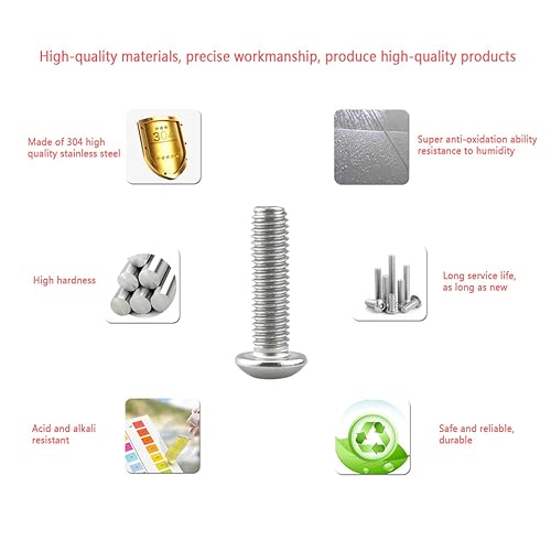 Schrauben und Muttern-Set, Sechskantkopf M4 Edelstahl-Maschinenschrauben und Rundkopf-Sechskantschrauben-Sortiment (8/10/14/16/18/20/25/30/35 mm) (M4, Silver)