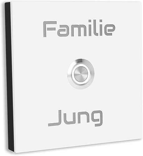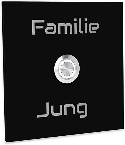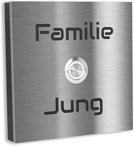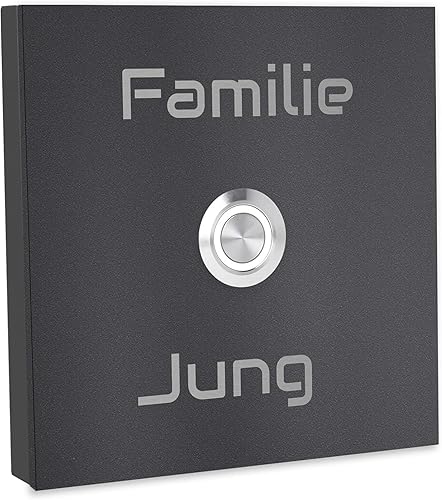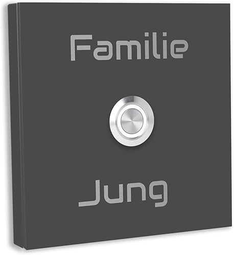 Jung Edelstahl Design Türklingel Bochum - Klingel V2A Edelstahl - incl. Gravur - LED Taster wählbar - Aufputz/Unterputztürklingel (Eisenglimmer db703, 10x10 cm)