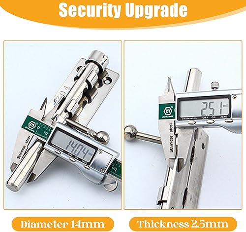 Forhandy 304 Edelstahl Türriegel, Bolzenriegel Verdickte Riegelschloss 14 mm Dick Türriegel Außen mit Vorhängeschloss Loch, Tür Riegel für Haus Hof Garten Tor Zaun (20cm)