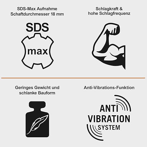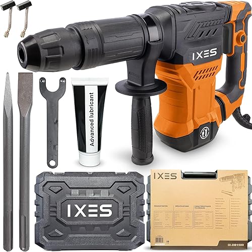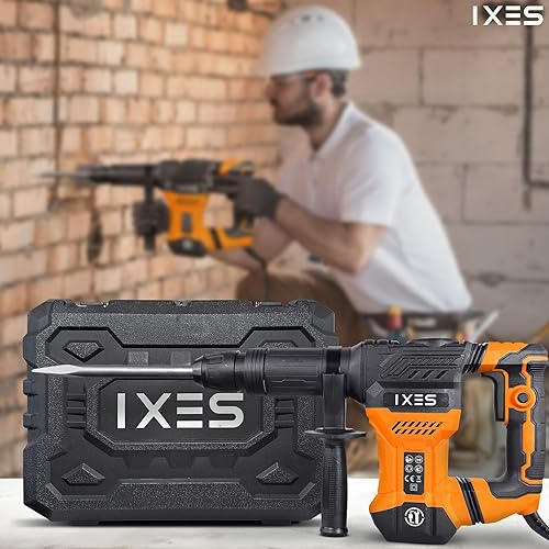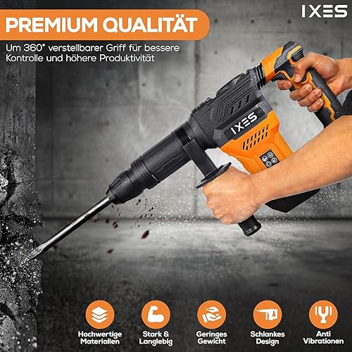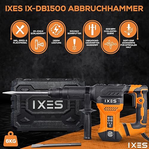 IXES Abbruchhammer IX-DB1500 inkl. Spitz- & Flachmeisel | 20 Joule Schlagkraft | 1300W Leistung | SDS Max Bohrfutter | 4100 bpm Schlagfrequenz | Stemmhammer | Schlaghammer | inkl. Kunststoffkoffer