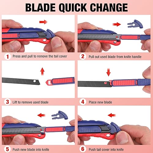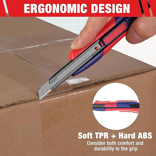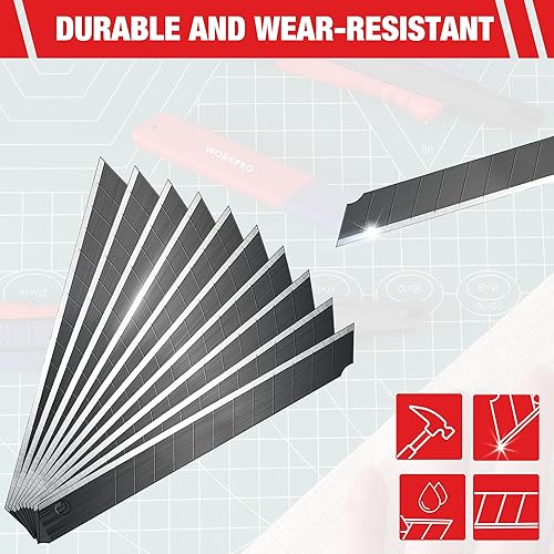 WORKPRO 3 Stück Cuttermesser Set 9mm mit 10 Ersatzklingen aus SK5, 2-in-1 Cuttermesser Profi mit Komfortgriff, Edelstahl-Schiene, Kartonmesser Abbrechklingen, Zum Schneiden von Papier, Pappe