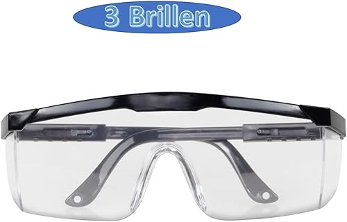 HMH 3 x Schutzbrille für Brillenträger mit verstellbaren Bügeln Arbeitsschutzbrille schwarz Schutzbrillen für Labor in Universalgröße Sicherheitsbrille zertifiziert