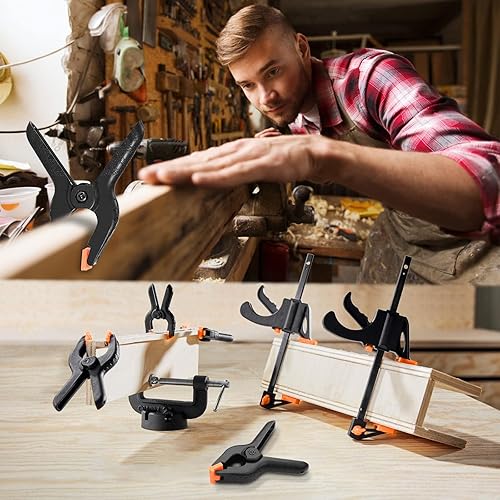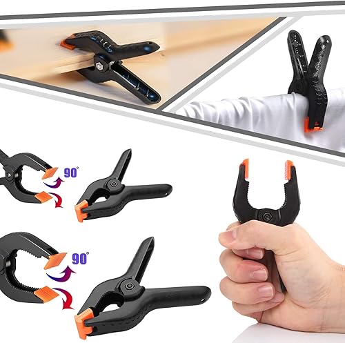 SWTYExt 10 Stück Einhandzwinge Federzwinge Set Nylon Leimklemmen mit Schraubzwingen für Holzbearbeitung Heimwerken Fotografie Studio Leben (3 Zoll & 4 Zoll)