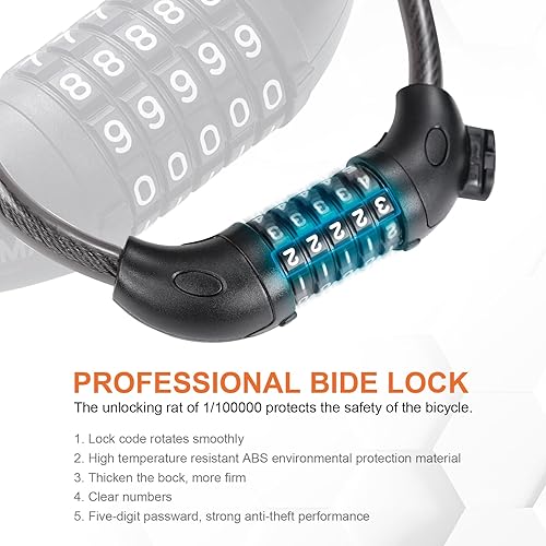 GRIFEMA GAK1203-12 Fahrradschloss, Diebstahlsicherung, Kabelschloss mit 5-stelliger Kombination, für Fahrräder, Motorräder, Scooter, 120 cm, Schwarz