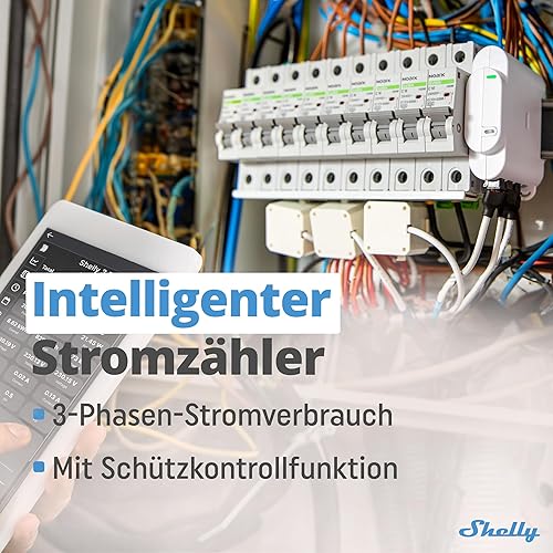 Shelly 3EM | Wlan-gesteuerter intelligenter 3 Kanal Relaisschalter mit Energiemessung und Schützsteuerung | Alexa & Google Home kompatibel | iOS Android App | Kein Hub erforderlich | Stromüberwachung