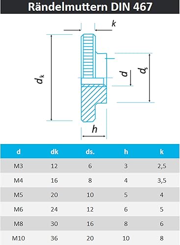 PROTECH 5 Stück Rändelmuttern M6 Edelstahl A1 VA rostfreier niedrige Form Mutter DIN 467 Rändel Muttern Gewinde