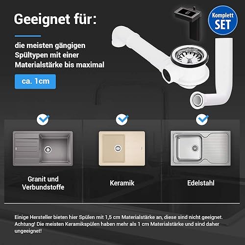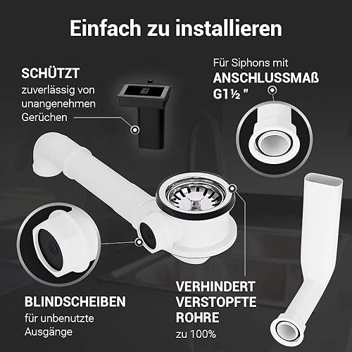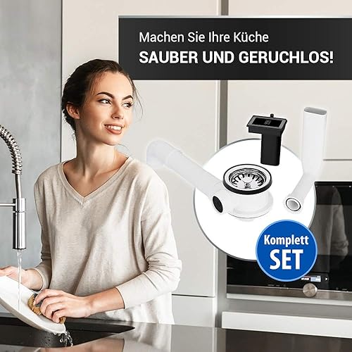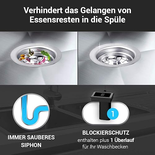 AQUADE 72341 Siebkorbventil Ventil 70mm mit Raumschaffer Abtropf-Überlauf, Edelstahl, Kunststoff