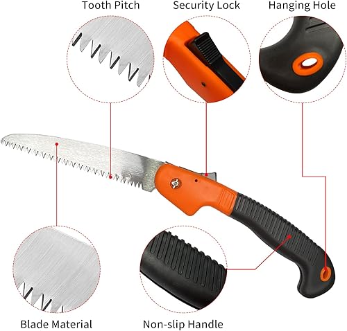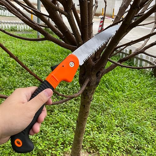 Newaner Astsägen,Handsäge,Outdoor-Klappsägen Sägeblattlänge 18cm Sägeblatt aus Stahl Säge zur Reparatur von Terrassengärten, Reisecamping,39cm klappbare Säge (Orange)