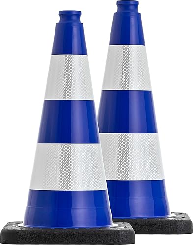 UvV-Shop Leitkegel, 50 cm Pylone blau reflektierend mit schwarzen Fuss ca. 2,2 kg schwer