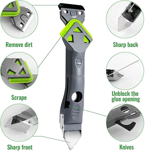 Collazoey Silikonentferner Werkzeug, 7 in 1 Fugenwerkzeug Fugenkratzer aus Edelstahlkopf mit Fugenglätter, Abzieher werkzeug für Küche Bad Boden Fliesen