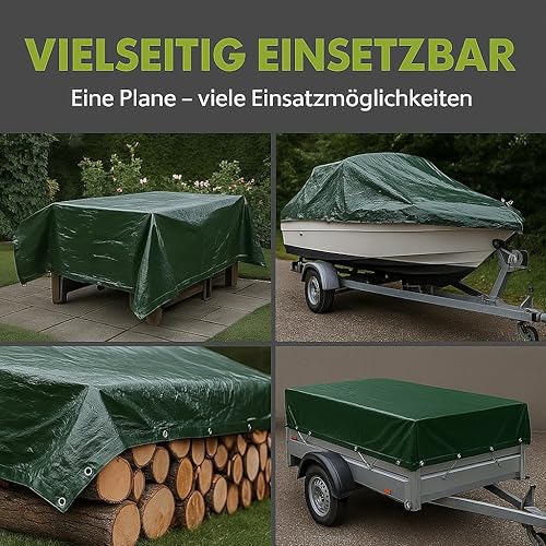 Colorus Abdeckplane Gewebeplane 48m² | Grün 6 x 8 m | Gewebe- Abdeckplane wasserdicht Gartenmöbel | Wetterschutzplane | Plane mit Ösen | Abdeckplane Holz | Ösenplane | Bootsplane | Allzweckplane