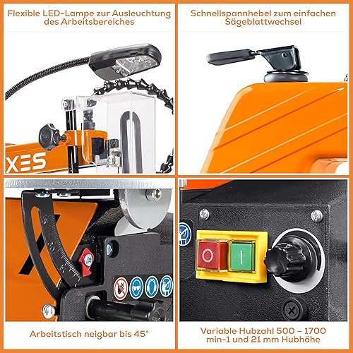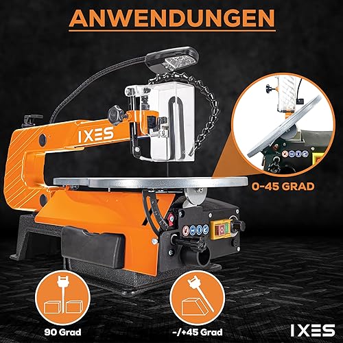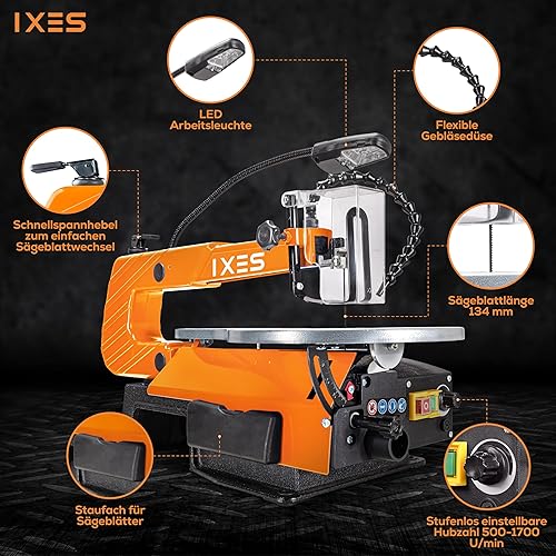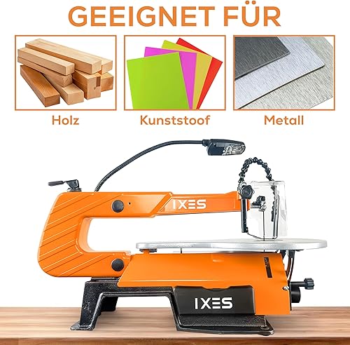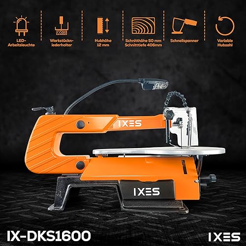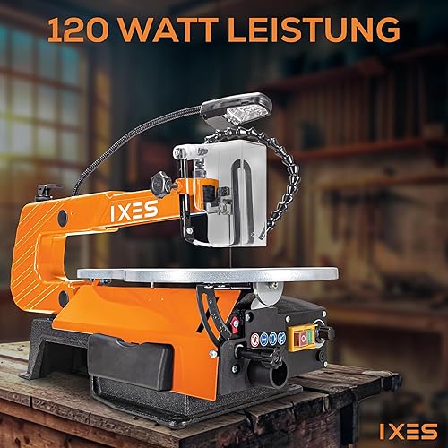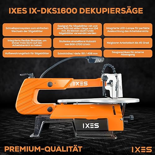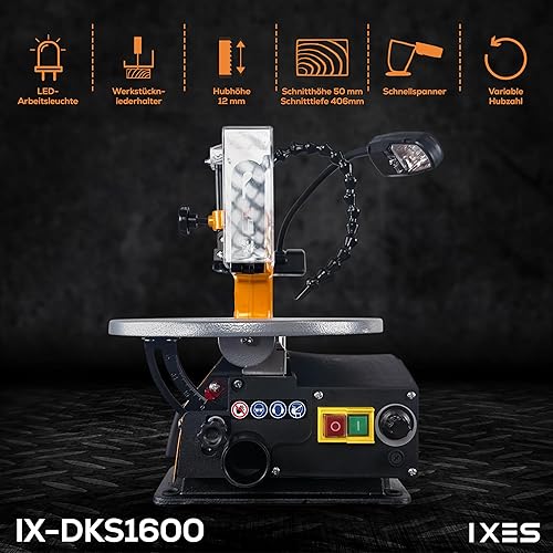 IXES Dekupiersäge IX-DKS1600 Modellbausäge | 120W Leistung | 50mm Schnitthöhe | flexible Gebläsedüse | Variable Hubzahl 500-1700 U/min | LED Licht | Laubsäge | verstellbarer Metalltisch | Niederhalter