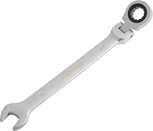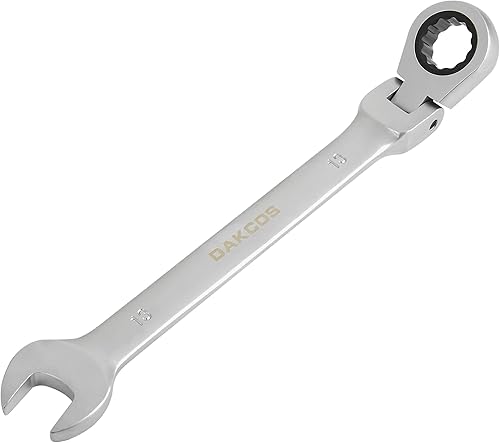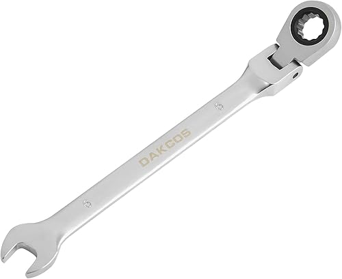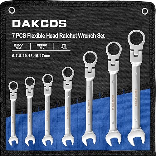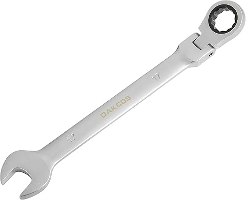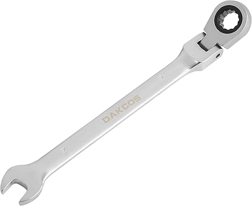 DAKCOS Kombi-Ratschenschlüssel 7mm - Metrischer Ratschenringmaulschlüssel mit Gelenk aus CR-V mit mattierter Chromoberfläche