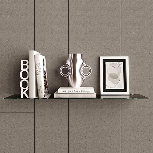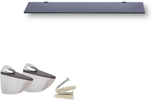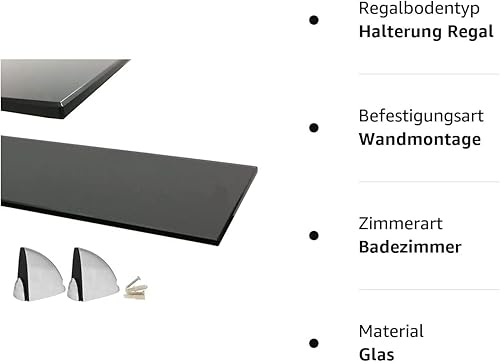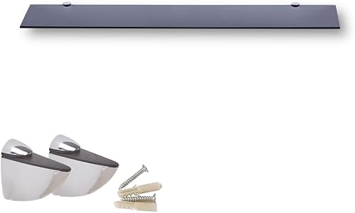 Euro Tische Glas Wandregal 50x17.8cm Badregal, Glas Regal für Badezimmer, Duschregal mit 6mm ESG Sicherheitsglas and Metallhaltern Montiert, Verschiedene Größen (Schwarz
