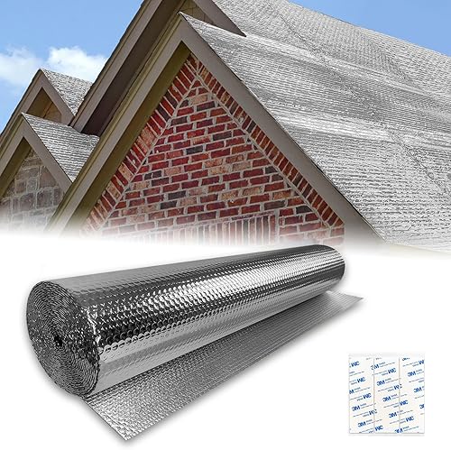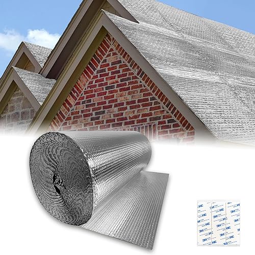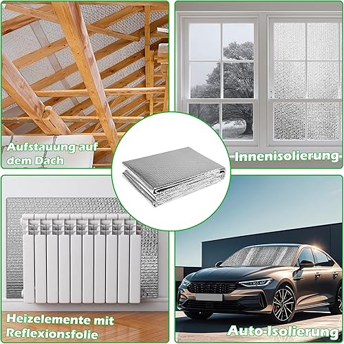 Froadp 0.6x20m Isolierfolie Dämmfolie Doppelte Alu Luftpolsterfolie Thermofolie Heizkörper Reflexionsfolie Blasenfolie Dämmstoffe Isolierungsfolie für Dächer Wände und Böden Wärmehaltung