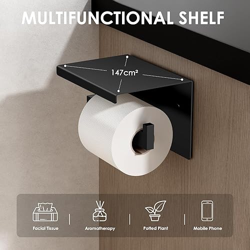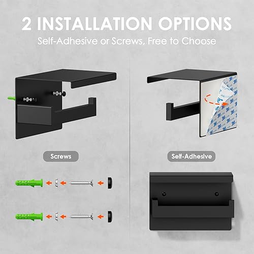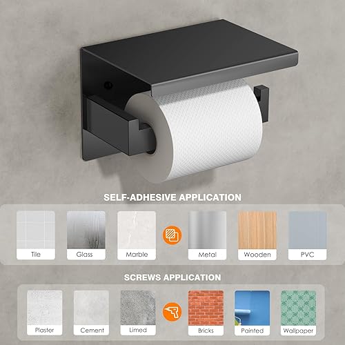 Auxmir Toilettenpapierhalter ohne Bohren, Selbstklebend Klopapierhalter mit 2 Montagemethoden, Edelstahl Klorollenhalter mit Ablage, WC Papier Halterung Wandmontage für Küche Badzimmer, Silber
