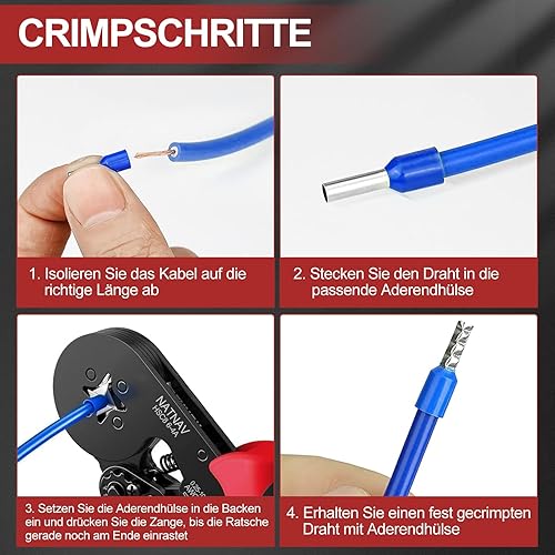 NATNAV Crimpzange Aderendhülsen Set für 0,25-10 mm² mit 1300 Stück Aderendhülsen, Aderendhülsenzange Crimpzange Set, Crimpzangen, Krimpzangenset