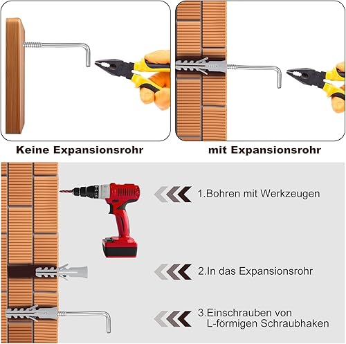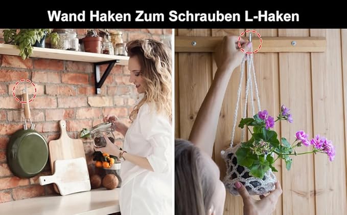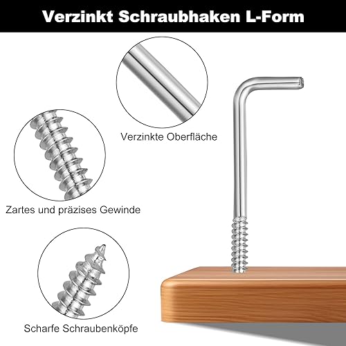 Annyswit 200 Stück Schraubhaken L-Form 4 Größen, Wand haken Zum Schrauben L-Haken Verzinkt, Weiß L Rechtswinkel Hakenschrauben mit Expansionsrohren 3 Größen, Für Hause, Arbeitsplatz, Büro
