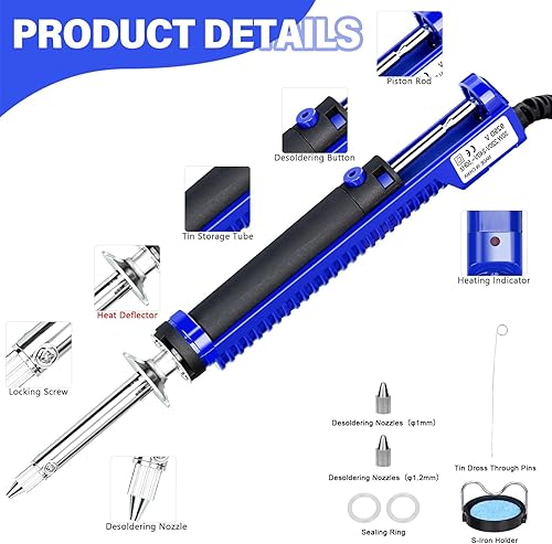 Entlötpumpe,Entlötkolben Elektrisch, 240V 30W Lötkolben Sauger Entlötpumpe mit 1.0 mm 1 piece und 1.2 mm 2 Pieces Entlötdüsen, 1 Rolle Blechdraht