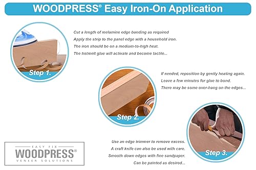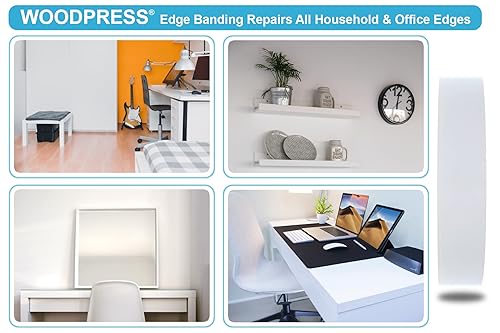 WoodPress® 22mm Perlweiß Melamin Kantenumleimer mit Schmelzkleber – 50m Industrielle Rolle – Einfaches Aufbügeln für Heimwerker