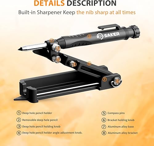 Saker Multifunktionales Anreißwerkzeug- Multifunktions Baustift- Konstruktionsbleistift- Zimmermannsbleistift, Anreißwerkzeug mit Tieflochstift, DIY Holzbearbeitungs-Anreißlehre Anreißer