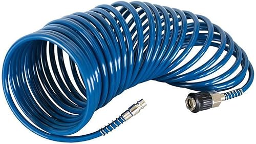 Scheppach Spiralschlauch 10m blau 1/4 Zoll Stecknippel | Druckluftschlauch passend für Scheppach Kompressoren | Druckluftspiralschlauch mit Schnellkupplung