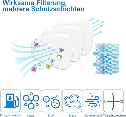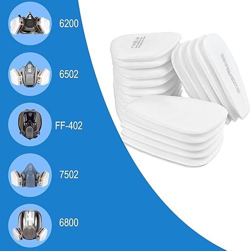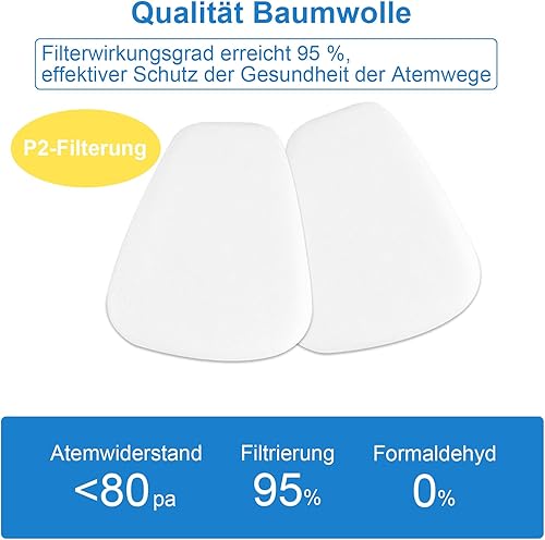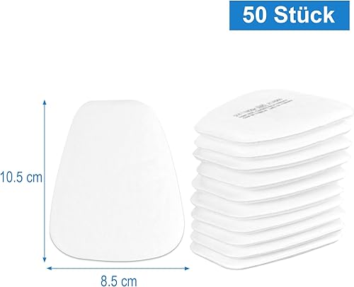 Faburo 50 Stück Atemschutzmaske Filter, 5N11CN Filterwatte für Staubmaske 6000, 6200, 6800, 7501, 7502, FF402, Lackiermaske Baumwollfilter Partikelfilter Set, Staubfilter für Lackieren, Feinstaub