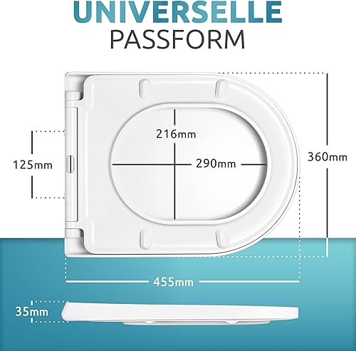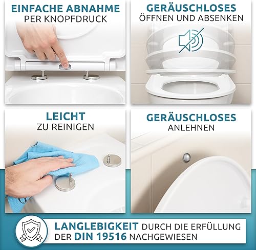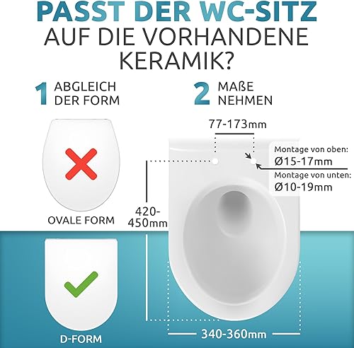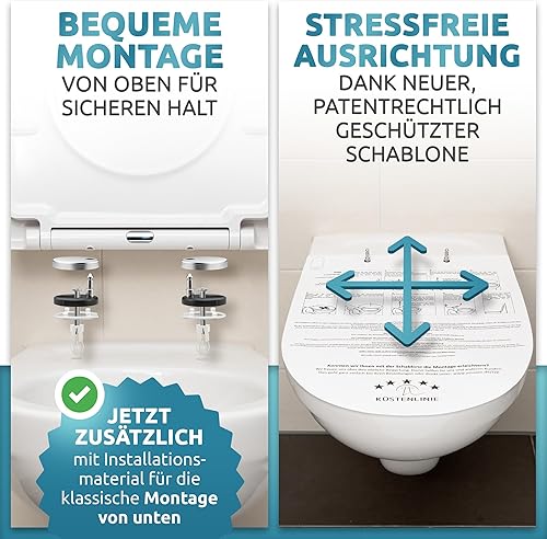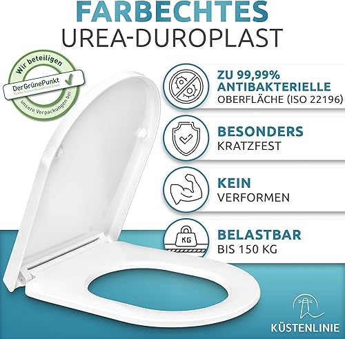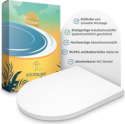 Küstenlinie® / Toilettendeckel mit Absenkautomatik D-Form | Komplettset | optimale Montage | WC Sitz antibakteriell | Das Original mit Schablone | WC Deckel weiß | Klodeckel universal