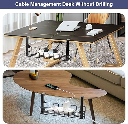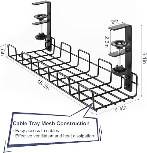 VFANDV Kabelmanagement Schreibtisch, Unter dem Kabelkanal Schreibtisch Ohne Bohren Klemmbar Kabel Organizer Tray Kabel Management Schwarz Kabelhalter Schreibtisch für Startseite Büro