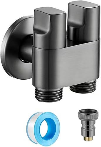 G1/2 1-in-2 Out Dual Control Ventil, Waschmaschine Wasserhahn WC Dreieckventil für Waschmaschine (grau)