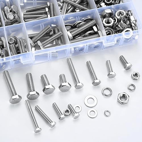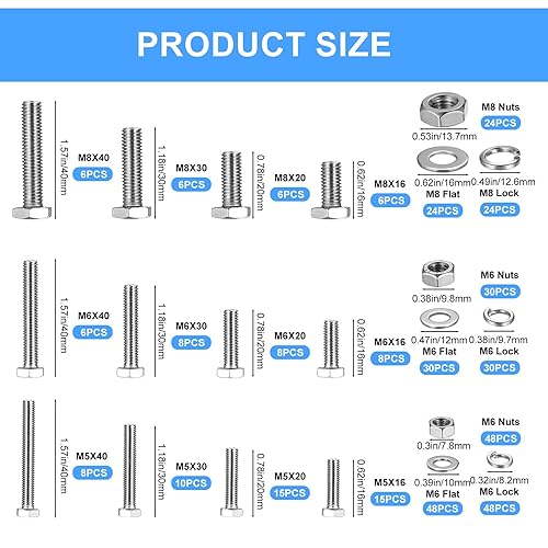 408 Stück Sechskantschrauben und Muttern Unterlegscheiben Set, M5 M6 M8 Gewindeschrauben Set, Maschinenschrauben mit Muttern Unterlegscheiben Sortiment Set Vollgewinde für Reparatur