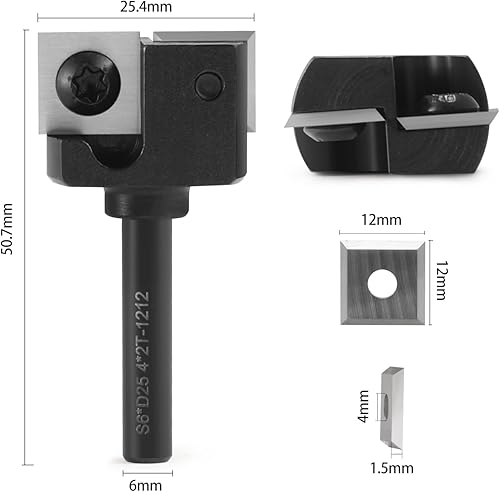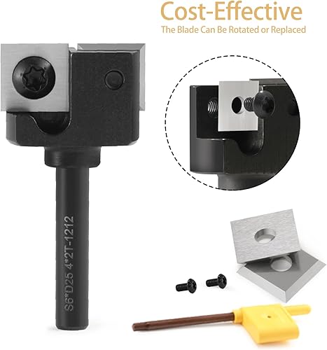 Planfräser,Planfräser 8mm schaft 25.4mm Schnittdurchmesser ,4-seitigen Austauschbare Hartmetall Klinge, Abrichtfräser, Abflachfräser,Oberflächenbit,Hobelfräser mit Wendeplatten