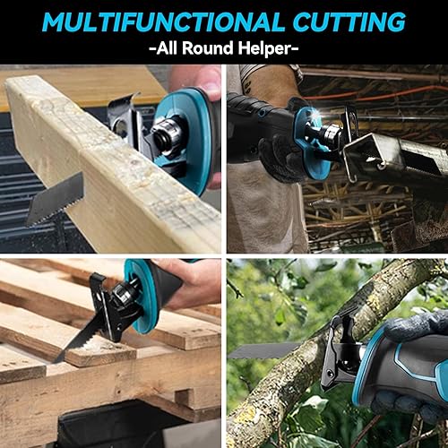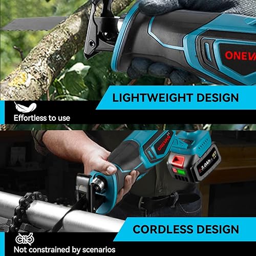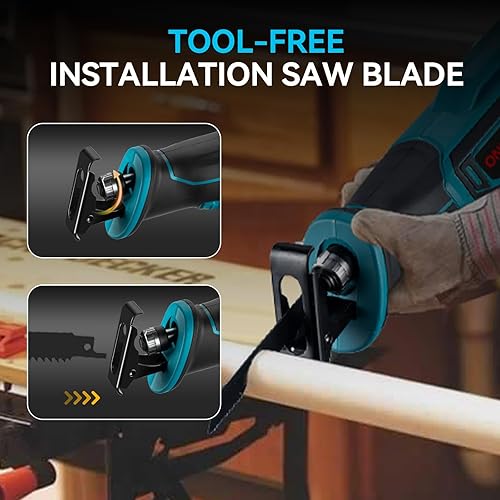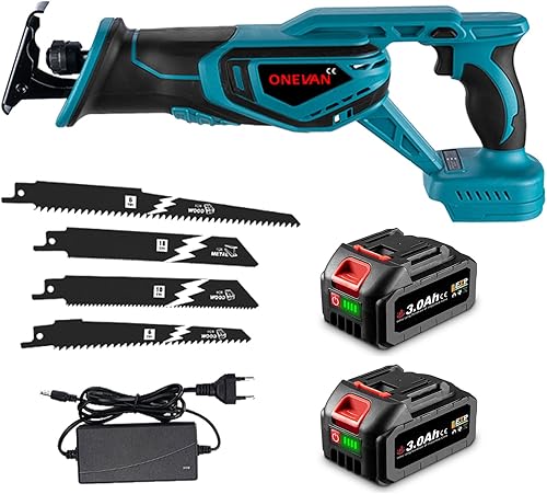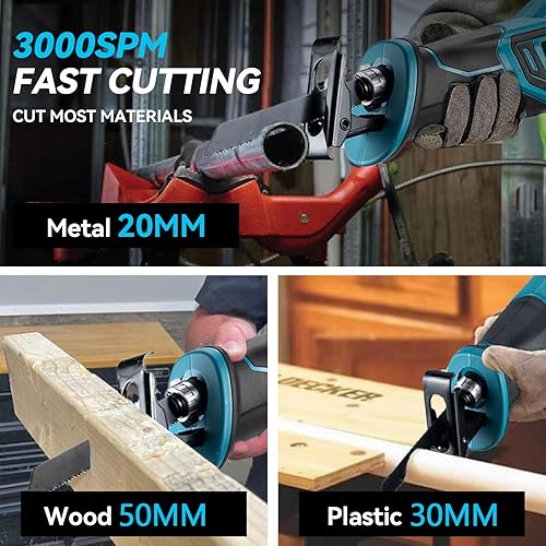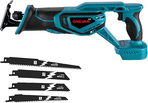 ONEVAN Säbelsäge Akku Kompatibel mit Makita 18V, 41mm Hubhöhe, 3000RPM Reciprosäge Fuchsschwanz Säge Elektrisch Tigersäge für Metall Holz PVC, mit 4 Sägeblätter (keine Akku)