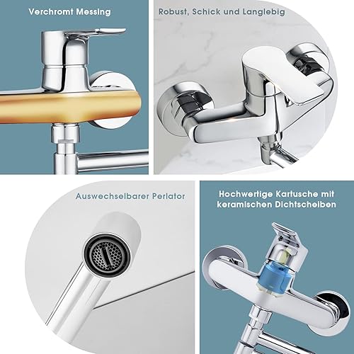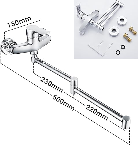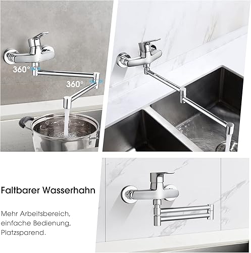 Wasserhahn Küche Wandmontage, Wandarmatur Küche mit klappbarem Auslauf, 360° Drehbare Küchenarmatur Wand Montage, Messing Verchromt